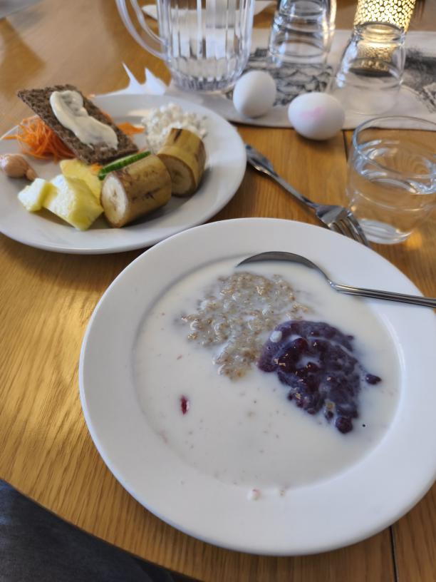Efter provtagning var det dags för en grötstöt, idag hederlig gammal havregrynsgröt utan krusiduller. 🙂 Lite lingonsylt, banan och dom obligatoriska äggen, idag var det även rejäla ananasbitar med i frukostbuffén vilket uppskattades.