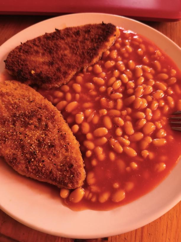 Hur som helst så tittade jag in en sväng till Mor och tog in hennes post och fyllde på frön åt småfögglan, bar ut sopor och sen hem igen och fixade mat. Tänkte testa att göra enchilladas på vegofärs, men det sket sig, hade ju ingen sån hemma märkte jag. Så det fick bli vegoschnitzel och en burk vita bönor istället, det är ju bra käk både för diabetes och övervikt.