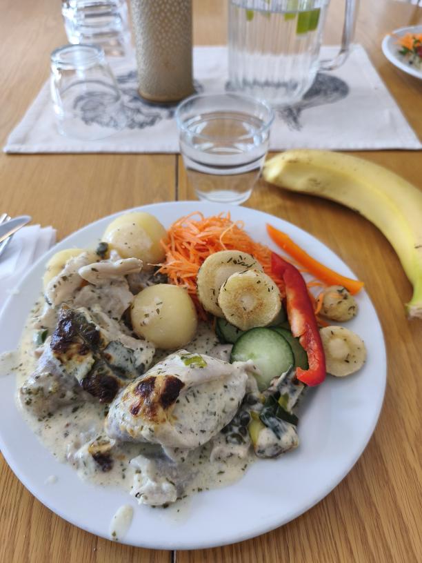 På det följde middag, som vanligt på fiskdagar blev det soppa, grönkålssoppa stod det på skylten. Helt ok enligt mig, och sen att man får mjukbröd till soppa är ju välkommet. 😛 Drog ner lite på grönfodret idag, var helt enkelt inte så hungrig.