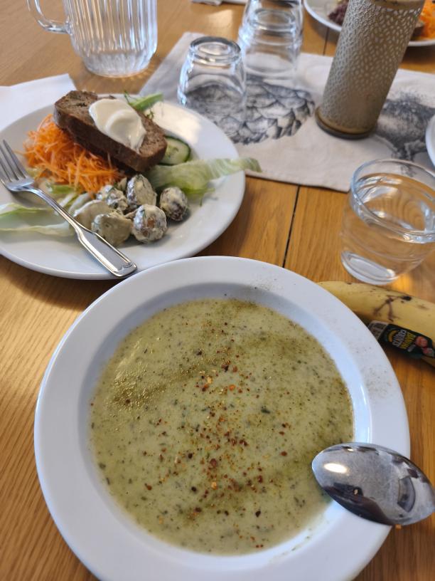 Jodå, det var soppa till middag, potatis och purjolökssoppa om jag minns rätt. Som vanligt var det gott, och vi fick även mjukbröd till soppan vilket uppskattas. Ser kanske lite mysko ut på soppan, men det är bara örtsalt eftersom det kan vara lite smaklöst ibland, men det är ju bara för att det skall passa alla och det är ju lättare att tillsätta lite salt än att ta bort saltet som redan är applicerat.